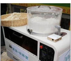 就食品安全而言,消費者從機器頂端圓形的落面裝置以及外置水箱就能看出,智能鮮面機原料只有面粉和水,制作過程安全透明,全面保障面條衛生安全。