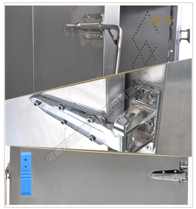 蒸柜的內(nèi)外表面采用優(yōu)質(zhì)不銹鋼材料制造,符合衛(wèi)生要求;蒸柜內(nèi)裝有產(chǎn)品中心溫度探測(cè)器,可有效的觀測(cè)到產(chǎn)品中心的溫度狀況,自動(dòng)化程度高;蒸柜密封選用耐高溫硅膠材料,密封性能好;門(mén)板保溫采用耐高溫聚氨酯注入發(fā)泡而成,既輕巧有保溫;柜身保溫選用珍珠巖等混合材料,堅(jiān)固、扎實(shí);蒸汽管道保溫選用高密度巖棉+鋁外殼裝飾;蒸柜配有獨(dú)立不銹鋼抽風(fēng)機(jī)機(jī)組;前后柜門(mén)口下配有不銹鋼手動(dòng)升降斜坡各一個(gè),方便蒸車(chē)進(jìn)出;蒸汽疏水閥選用進(jìn)口優(yōu)質(zhì)產(chǎn)品;蒸柜內(nèi)部上頂用不銹鋼弧形搭襯,凝結(jié)水可順壁下流,無(wú)衛(wèi)生死角,方便清洗。